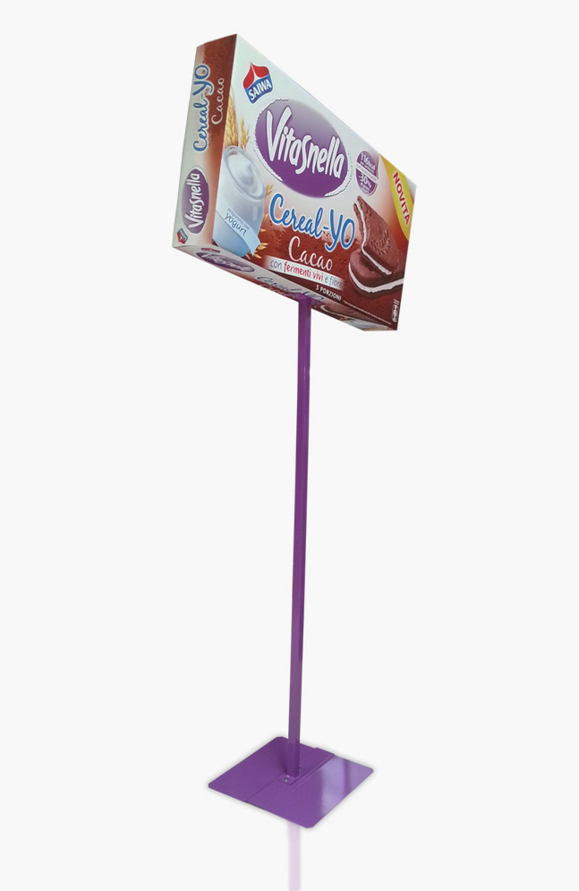 Struttura piantane realizzata in lamiera acciaio con verniciatura epossidica, interamente smontabile per isola promozionale mockup 3D realizzati in vetroresina o gomma piuma