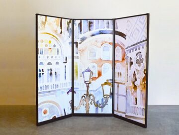 A noi di Reclame il compito di ingegnerizzare l’idea dell’architetto Nome Cognome e realizzare paravento separè con caratteristiche uniche per funzionalità e design che consentono all’espositore di essere utilizzato da entrambi le facciate e alle ante laterali di ruotare completamente a 360° e compattarsi a fisarmonica.