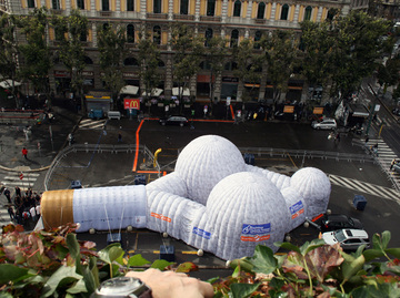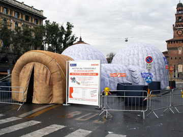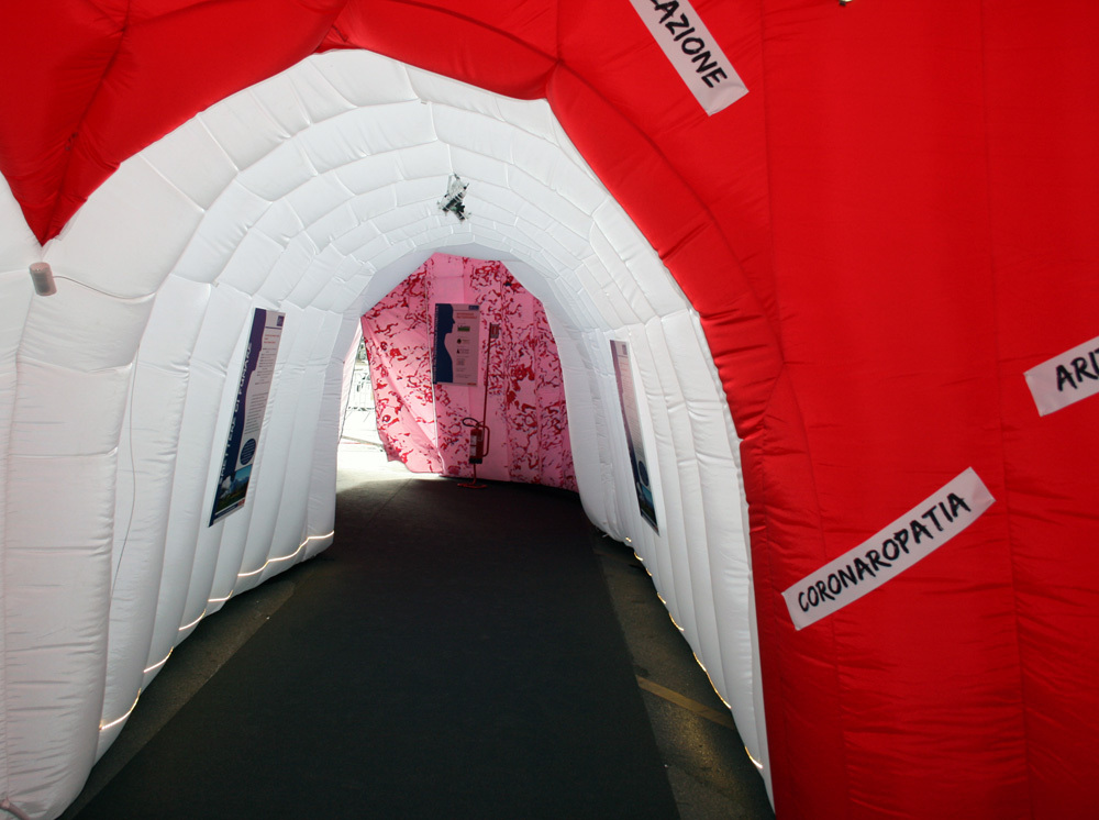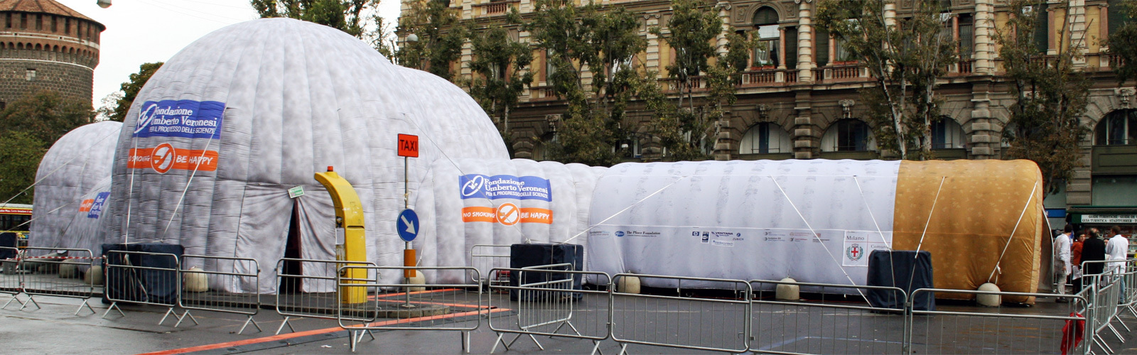 Progettazione, realizzazione ed allestimento itinerante struttura gonfiabile per mostra multisensoriale sui danni del fumo.